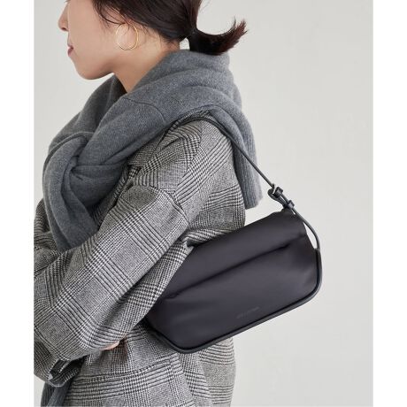 光沢のあるナイロン素材は程よくカジュアルさを残しつつもキレイ目な印象。