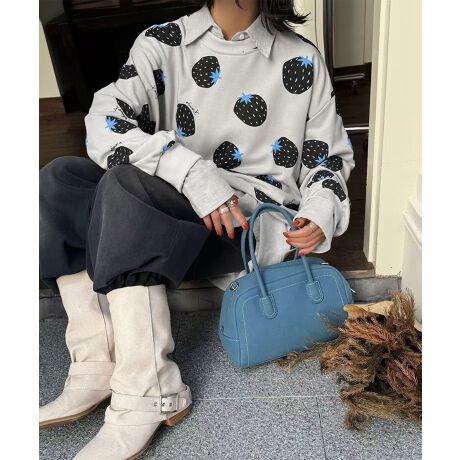 HOOK for girls 総柄スウェット トレンドプリント 韓国ストリート/原宿ガーリー