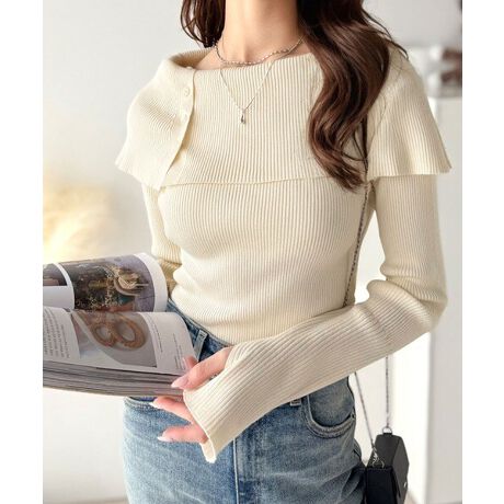 トレンド感のあるオフショルデザインに、リブニットの縦ラインでスタイルアップが叶う大人のためのニットトップス。