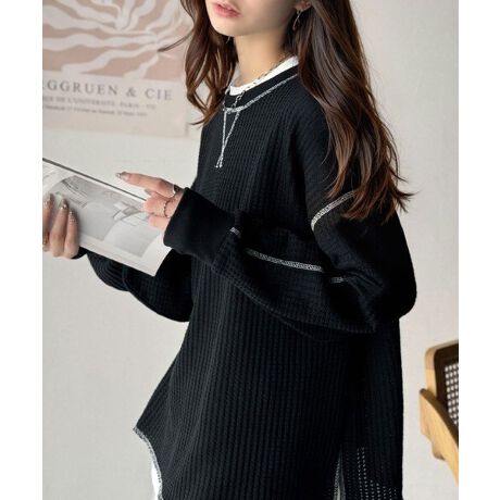 ワッフル編みが心地よい、こなれ感たっぷりのカットソー。