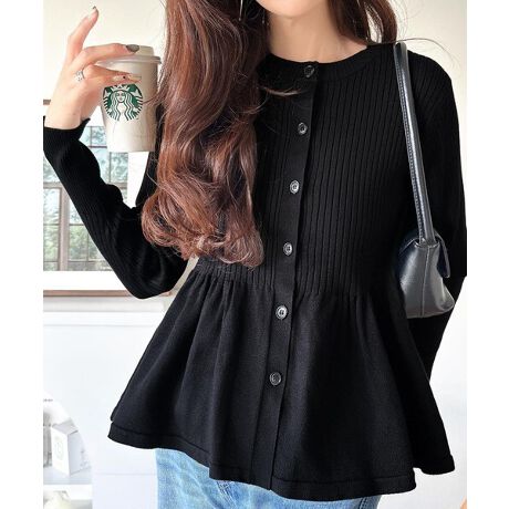 シンプルながらも女性らしいデザインのペプラムカーディガン♪