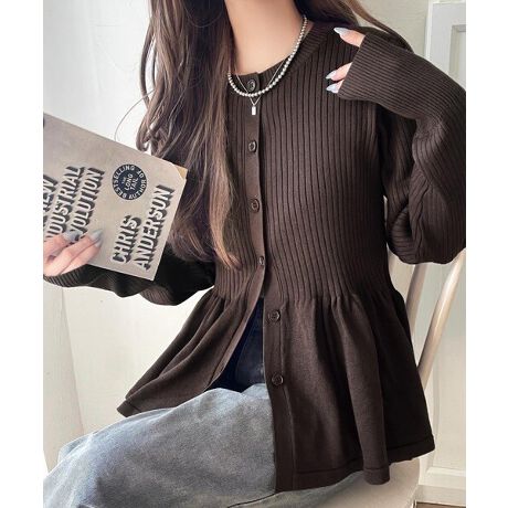 シンプルながらも女性らしいデザインのペプラムカーディガン♪