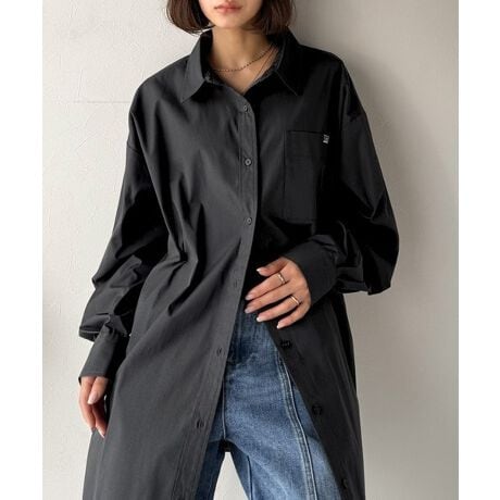 程よいハリとコシをもたせた素材を使用しているので、着た瞬間にシルエットがきれいに決まりやすいビッグシャツ。