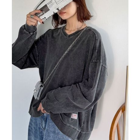 ヴィンテージライクな質感が特徴のVネック切り替え裏毛ロンT。