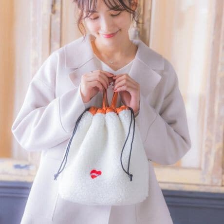 ハートをモチーフにした刺繍を入れたボア面と、同系色のロゴ刺繍をいれた無地ポリエステル面の2wayのデザインが楽しめます。