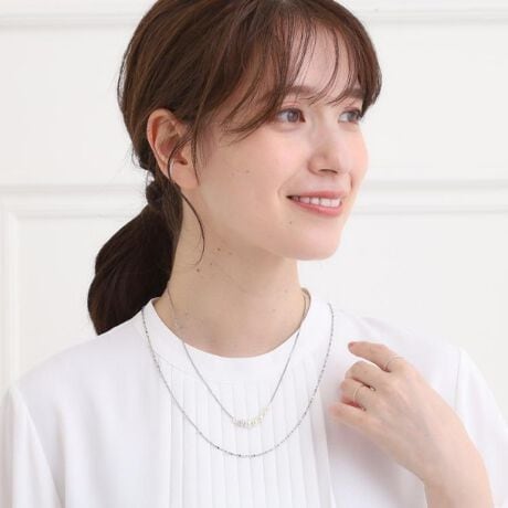 短いネックレスを一重で着用し、長いネックレスを重ねることで、より魅力的な着こなしに。