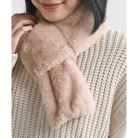 巻くだけでシーズンライクなコーデになるフェイクファーのマフラー。