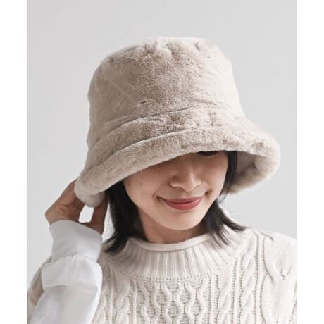 なめらかでふわふわとした優しい肌触りのフェイクファーハット。