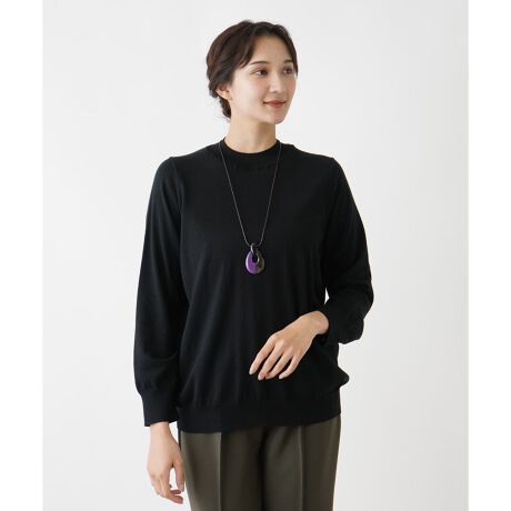 [型番:0405580]深みのある色合いと光沢感、大きめのモチーフが大人の上品さを引き立てるロングネックレス。秋冬のシンプルになりがちな編み地のトップスやカットソーにぴったりのアクセサリーです。