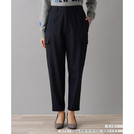 シンプルな中にもディテールのこだわりが光るワークパンツ。ウエストと腿部分の両サイドに存在感のある4つのフラップポケットをレイアウトし、絶妙なアクセントを加えています。レッグラインは裾に向かってすっきりと絞り込んだテーパードシルエットでスマートな印象に。バックウエストはゴム仕様で心地よくフィット。ベーシックな無地のデザインなので、様々なトップスと相性がよく、これからの季節のデイリーなコーディネートに取り入れやすいアイテムです。
