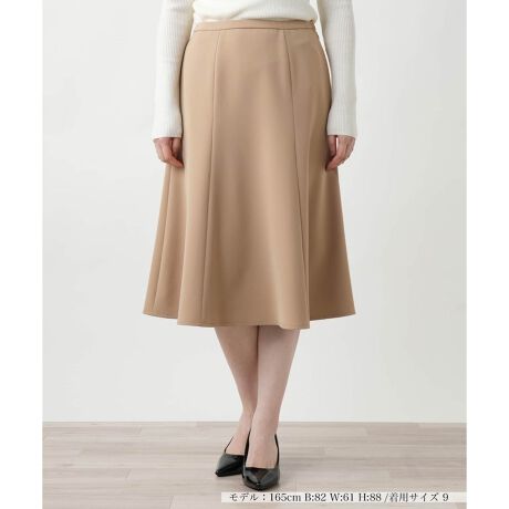 ストレッチ性のある生地を使用し、快適なはき心地を追求したベーシックな無地のミディアム丈のスカート。裾周りをふわりと広げた立体感のあるフレアシルエットが、動きに合わせて優雅に揺れ、女性らしい柔らかなニュアンスを演出。膝下の絶妙な丈感となっているので、オフィスから休日のお出かけスタイルまで幅広く活躍してくれそうです。フロントには右側のみポケットをレイアウト。サイドにはホックとファスナーが施されており、着脱もスムーズです。