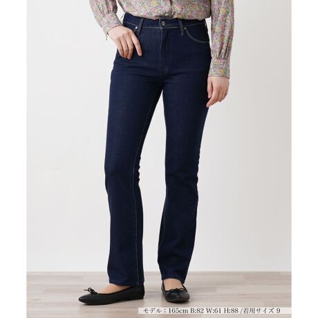 すっきりとしたストレートシルエットが美しいラインを引き立てるブーツカットデニム。脚をスラリと見せてくれる計算されたデザインがポイント。深みのあるカラーが上品で落ち着いた印象を与え、カジュアルからきれいめスタイルまで幅広いコーディネートに対応します。ストレッチが効いているので足捌きも良好。トップスにタイトなニットやブラウスを合わせれば、女性らしさが際立つ上品なスタイリングに。さらに、足元にパンプスを合わせると華やかさがプラスされ、ローファーを選べばトラッドな印象に仕上がります。