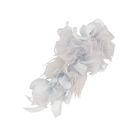 シルクオーガンジーやサテン素材を使用したフラワーモチーフのコサージュ。繊細で軽やかな素材がふわりとした立体感を生み出し、上品で優雅な雰囲気を演出。控えめながらも上品に輝くビジューをあしらい、さりげない華やかさをプラス。添えるだけでシンプルな装いにもエレガントなアクセントを加えてくれます。結婚式やパーティーなどの特別なシーンにふさわしく、定番のドレススタイルを一層引き立てる、洗練されたアクセサリーです。安全ピン留め。