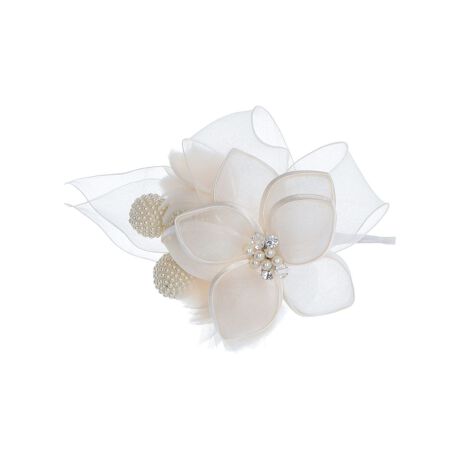 重ね合わせたフラワーモチーフが生み出す、立体感が魅力的なコサージュ。繊細な花びらのレイヤードが柔らかな陰影を生み出し、エレガントな雰囲気を引き立てます。多彩なビジューが胸元で美しく煌めき、特別な日の装いに華やかなアクセントを加えてくれる一品。女性らしい気品を漂わせるデザインは、フォーマルなスタイルにもぴったり。さらに、ジャケットなどにブローチとして添えれば、普段のコーディネートにも洗練された印象をプラスできます。