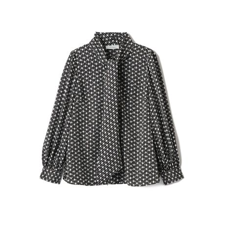 クラシカルな雰囲気が魅力のボウタイブラウス。細やかなモノトーンの柄が上品で、シックな印象を演出します。大きめのボウタイが華やかさをプラスし、結び方次第で異なる表情を楽しめるのもポイント。柔らかい生地感で着心地がよく、程よくゆとりのあるシルエットが動きやすさを確保。オフィスコーデからフォーマルなシーンまで幅広く活躍する一着です。ジャケットのインナーとしても映えるデザインで、洗練されたスタイルを叶えます。