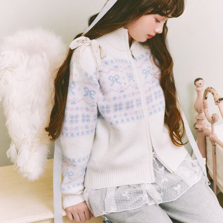 ふんわりとした風合いがかわいいノルディック柄のジャカード編みカーディガンです。