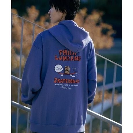 レギュラーとBIGの中間サイズの、リラックスFITシルエットのグラフィックプルパーカーです。