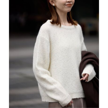 ・小さなお花の形をしたスパンコールを散りばめた大人着映えニット。