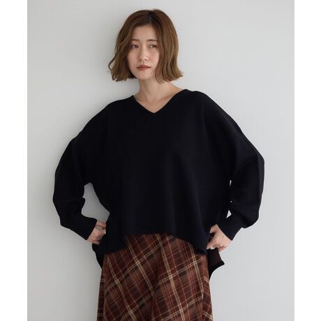 表裏で配色の異なるニット素材でシンプルに仕立てたプルオーバー。