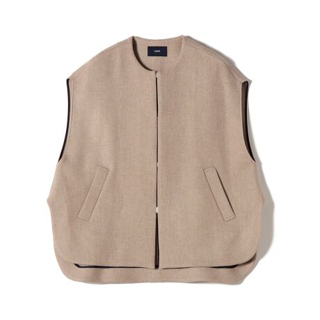 ノーカラーとゆったりとしたデザインでインナーを選ばず、ボリューム袖のブラウスなどいろいろなアイテムに重ねやすいデザインです。