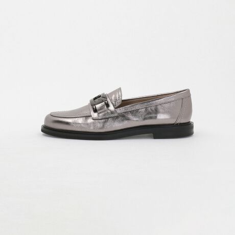 サドル部分に施したチェーンモチーフのメタルオーナメントが目を惹くローファー。