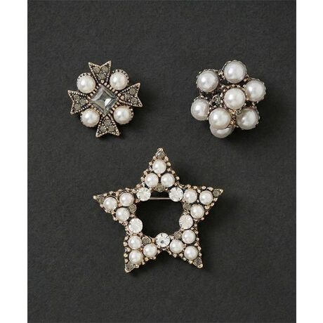 シャツ・ジャケット・ニットなど、アイテムを問わずワンポイント加えられる万能ブローチ*:+。