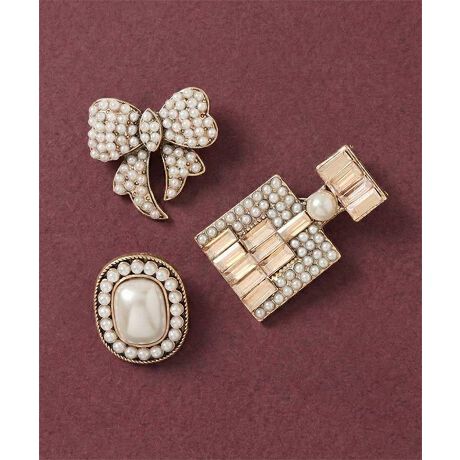シャツ・ジャケット・ニットなど、アイテムを問わずワンポイント加えられる万能ブローチ*:+。
