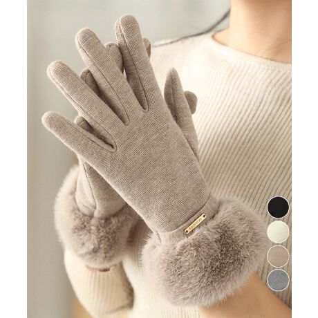 ふわふわフェイクファーがポイントのエレガントな裏起毛手袋。