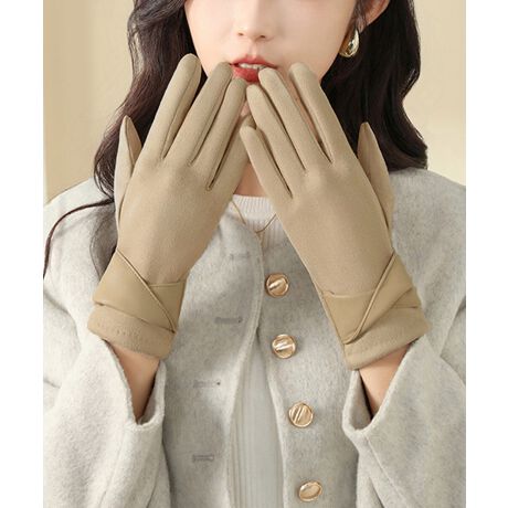 スエード調手袋裏起毛 リボン付き手袋防寒
