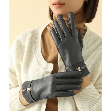 スエード調とレザーの切り替えが上品な印象を与える裏起毛の手袋。