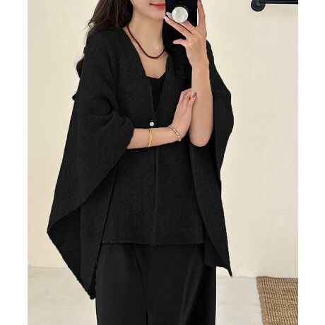 ストールのように羽織れる無地ポンチョ風ニットカーディガン。