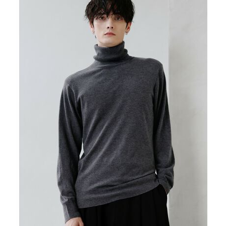 ウォッシャブル/抗ピリング 14Gシープカシミヤタッチタートルネック