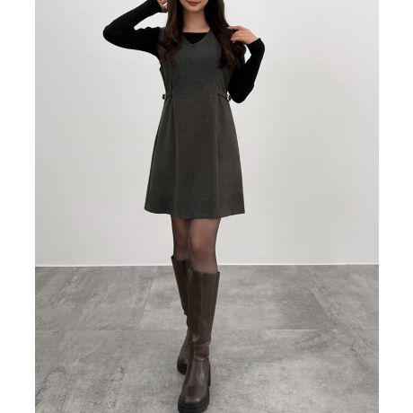 CENEA Vネックミニジャンパースカート