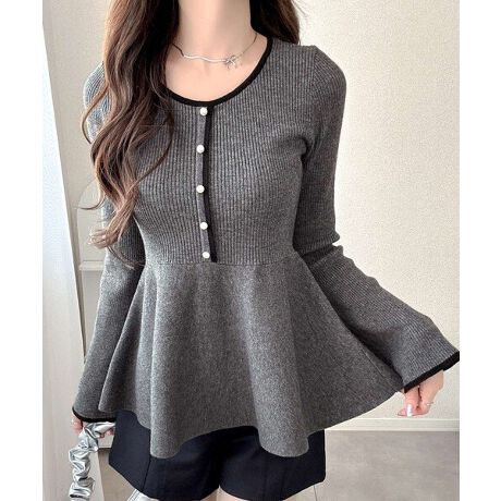 ウエスト切り替えから広がるペプラムラインで女性らしさを引き立て、上品な印象に♪