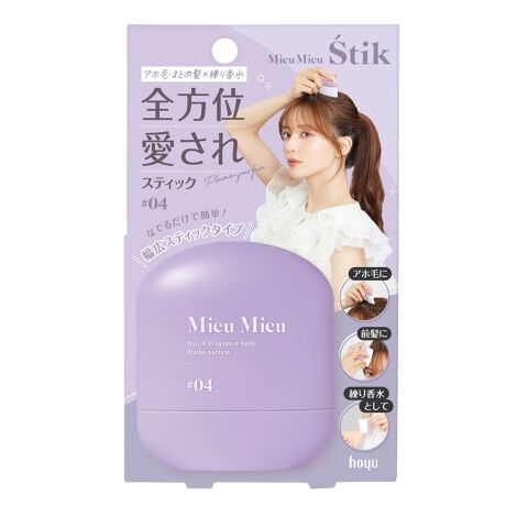 香りも髪も。“全方位”可愛く。アホ毛を抑えながら練り香水としても使えるマルチスティック。【#04 Plume-parfum 陽のぬくもりを感じさせ誰をも虜にするホワイトムスクの香り】◎商品特長:1.使いやすい楕円型スティック。可愛いコロンとしたフォルムのスティックは、使いやすさも優秀。横にして広範囲のアホ毛やまとめ髪を一気に整えたり、縦にして細かい前髪の調整をしたり、全方位隙なし髪を簡単に作れちゃいます。2.練り香水としても使える。厳選されたこだわりの4種のフレグランスは是非試してほしいポイント。体温の高い手首や首筋・耳の後ろに付けるのがおススメ。動くたびにリッチな香りがふわっと広がります。3.髪と肌に嬉しい使用感。オーガニック認証アルガンオイル※1とひまわり種子油を保湿成分としてダブルで配合。乾燥しがちな髪と肌の潤いをキープします。また、さらさらパウダー※2を配合。ベタつかない、パリつかない使い心地で使い続けたくなる使用感を目指しました。※1:アルガニアスピノサ核油※2:シリカ(皮脂吸着成分)