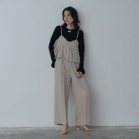 シンプルなベロアカットソーやタートルネックとレイヤードすることで、季節感を楽しめます。