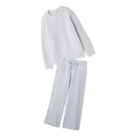 淡いカラーリングが可愛い‘パウダー’素材のプルオーバーと、やや濃い目カラーの‘ベビモコ’素材のリブロングパンツをセットにしました。プルオーバーは太めの袖が可愛いゆったりサイズ。パンツもはきやすいストレートシルエットで仕上げています。いずれも腰の位置にロゴ刺繍入りのワッペン付き。上下の素材感や肌触りの違いをお楽しみいただけるアイテムです。色はクリーム、ピンク、ラベンダー、ブルー、グレーの5色展開。HOMMEサイズとペア・コーディネートしたり、ギフトにもおすすめです。