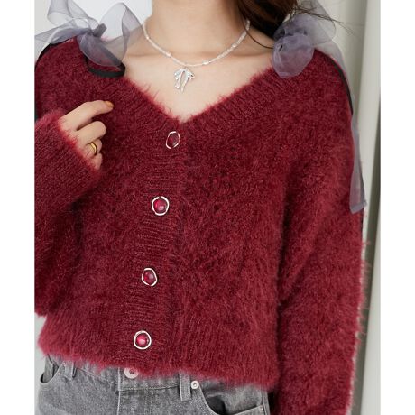 デイリーコーデにはもちろん、ちょっとしたお出かけやホリデーシーズンにもぴったりな華やかカーディガンです。