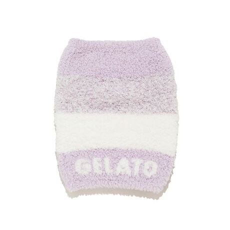 定番もこもこ素材‘ジェラート’を使用した、着こなしのアクセントになる3色ボーダーのシリーズです。ロゴジャガードがスタイリッシュなウエストウォーマーは、秋冬の温活に欠かせないアイテム。3色ボーダーのうち1色がメランジカラーになっているのがポイントで、ピンクとラベンダーはグラデーション調のカラーリング、ネイビーはメリハリのある配色デザインで仕上げました。同シリーズのルームウェアや小物を合わせたり、ギフトにもおすすめのアイテムです。