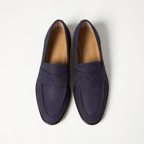 サドルを切りっぱなしにすることで、スッキリとした印象に仕上げたペニーローファー。