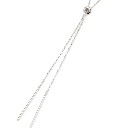 先端にあしらった金属調バーがさりげなくスタイリッシュな輝きを放つ、ラリエット風ロングネックレス。スライドボールの位置を変えればバランスを調整でき、ネックラインの開き具合に合わせてアレンジできるのが嬉しいポイントです。
