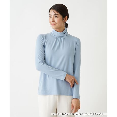 ドレープ感のある柔らかなニュアンスが特徴のハイネックプルオーバー。アクリルにレーヨン、ストレッチ素材を混紡した生地の優しい肌触りが感じられる一枚。すっきりとしたスマートなシルエットで着こなしやすく、定番のパンツスタイルからスカートを合わせたフェミニンルックまで、様々な着こなしに対応するトップスです。インナーとしても使えるので、これからの季節のワードローブに欠かせなくなりそうです。