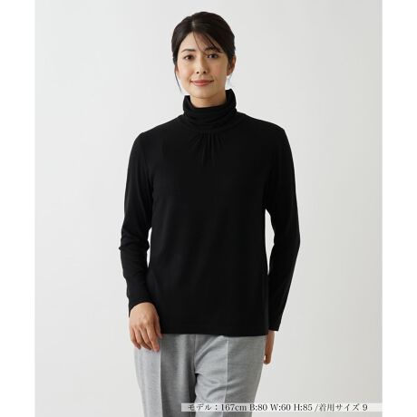 ドレープ感のある柔らかなニュアンスが特徴のハイネックプルオーバー。アクリルにレーヨン、ストレッチ素材を混紡した生地の優しい肌触りが感じられる一枚。すっきりとしたスマートなシルエットで着こなしやすく、定番のパンツスタイルからスカートを合わせたフェミニンルックまで、様々な着こなしに対応するトップスです。インナーとしても使えるので、これからの季節のワードローブに欠かせなくなりそうです。
