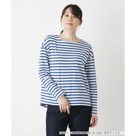 爽やかなテイストのマリンボーダーがインパクトを放つクルーネックプルオーバー。全体にカラーネップをちりばめ、趣のある表情を醸し出しています。すっきりと開いたネックラインがヘルシーなデコルテ見せを叶えます。ドロップショルダーでシルエットにゆとりをもたせ、肩肘張らないリラクシーな着心地を実現しました。ヘムラインは前裾を短めに設定することで軽やかなニュアンスに。左ショルダーのボタンは開閉できる仕様となっています。
