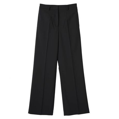 美脚見せを叶えるセンタープレス入りのストレートパンツ。縦のラインが強調され、すっきりとした印象で着こなせる一枚です。やや薄手の生地感は初秋にちょうどよく、裏地付きで透け感も気になりません。ほどよくゆとりを持たせたシルエットで快適なはき心地に。フロントはすっきりとした仕立てで、トップスをインしてももたつきにくく、シャツやブラウスとの相性も抜群。オンタイムはもちろん、ジャケットを羽織ればフォーマルな場面にも対応できる、頼れる一本です。