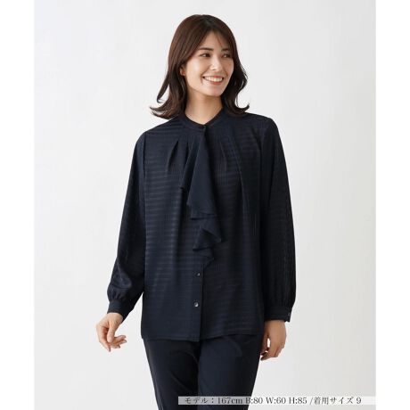細やかなシャドーチェックが味わい深い表情を醸し出す、品のある佇まいのブラウス。襟はバンドカラーですっきりとした印象に仕上げており、ドレープタイが大人の女性らしい華やかなエッセンスを添えるアクセントに。シルエットには程よくゆとりをもたせ、リラクシーな着心地を叶えました。落ち着いたシックな色合いで合わせやすく、さまざまなコーディネートに気軽に取り入れられるアイテムです。