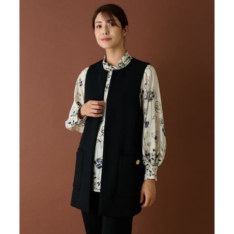 ROCHAS Premiereでも人気のジレアイテム。すっきりシンプルなデザインに仕上げています。素材はウール100%のダブルジョーゼット素材を使用。表面感があり上質感を感じられる国内尾州産地の上質な素材です。存在感を放つゴールド釦はイタリア製。何にでも合わせやすい飽きの来ないデザインに仕上げています。