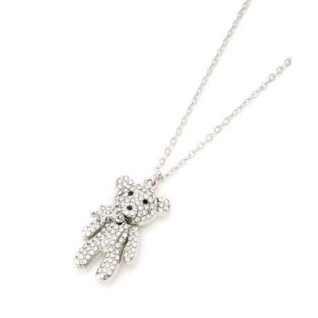 シンプルなトップスやワンピースが多くなるこの時期に、遊び心のあるアクセサリーは欠かせません。可愛らしいクマのシルエットと星モチーフに、煌めきのある繊細なラインストーン調パーツを散りばめた、可愛らしさの中にエッジの効いたネックレスです。いつものコーディネートを可愛く、華やかに仕上げてくれます。