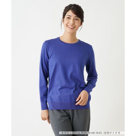 コットンにシルクをブレンドしてハイゲージで編み上げた、やや薄手のクルーネックニットプルオーバー。シンプルなデザインとすっきりとしたシルエットで着こなしやすく、ボトムスを選ばず気軽にコーディネートできるアイテムです。一枚での着こなしはもちろん、アウターとのレイヤードスタイルにもおすすめ。デイリーからオフィスカジュアル、週末のお出かけまで、多彩なシーンで活躍間違いなし。