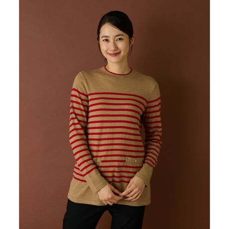 ポップな配色を効かせたニットのボーダーチュニック。リズム感のある変化ボーダーで気軽に着られる1枚です。